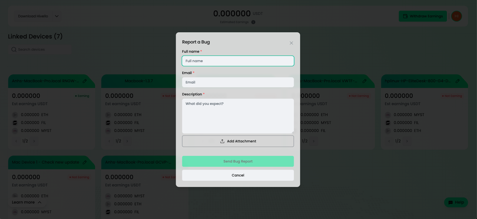 Our champions in the Hivello developer team are working hard to fix all bugs proactively, however, if you encounter any bugs throughout your journey with us, we would be grateful if you could report them directly through the app using the ‘Report a bug’ button.